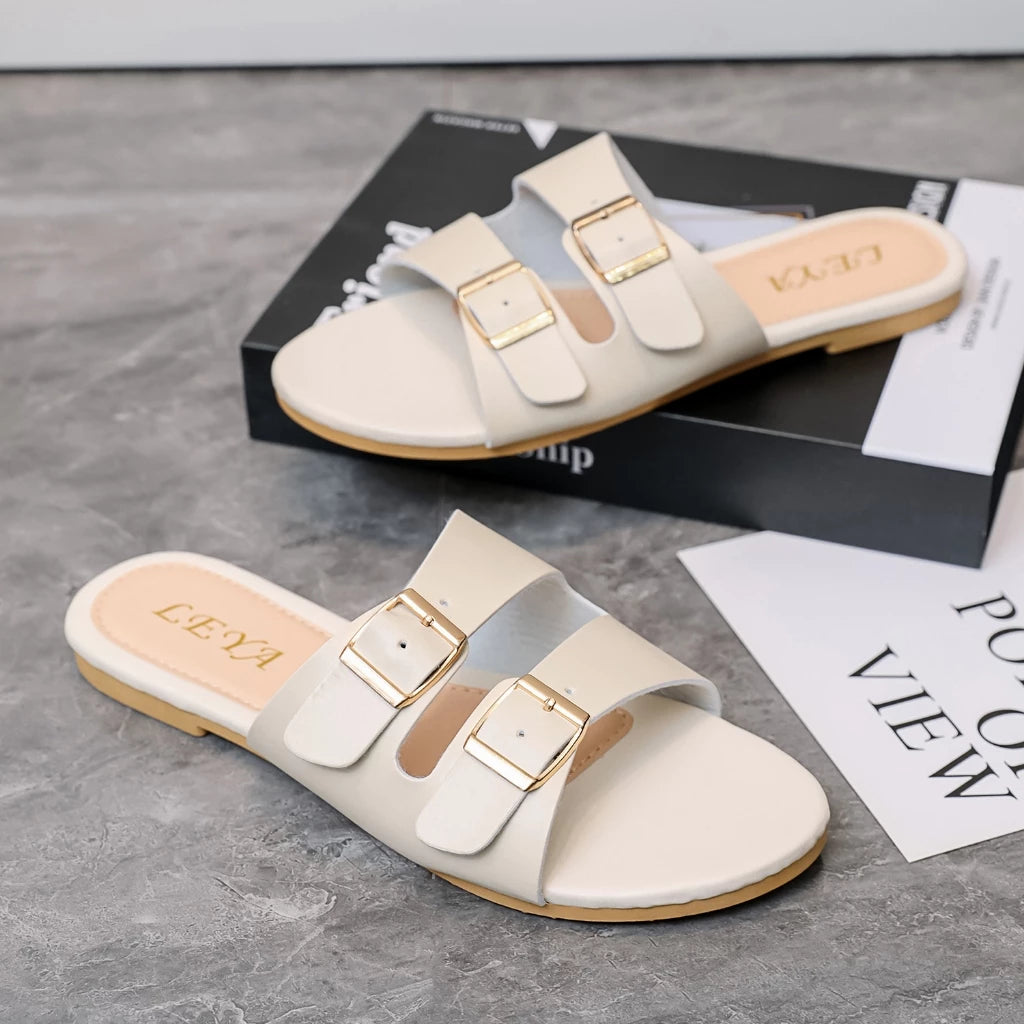 Step out in effortless style with Leya Sandals for Women, designed to reflect the latest Korean fashion trends with a clean, elegant finish. These sandals feature a modern two-strap design with stylish metal buckle accents, giving a refined yet casual look suitable for everyday wear.